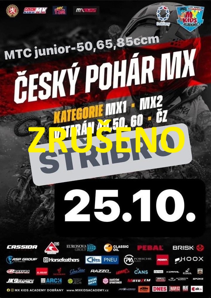 Bohužel musíme oznámit ZRUŠENÍ MOTOKROSU 25.10.2025 kvůli nesjízdné trati. Po deštích je dráha příliš mokrá a bahnitá. Omlouváme se za případné komplikace a děkujeme za pochopení. Zároveň se vedení klubu rozhodlo s okamžitou platností vyhlásit ve Stříbře ZIMNÍ PŘESTÁVKU. Z důvodu ochrany dráhy bude až do jara 2026 training zakázán. I v tomto případě děkujeme za pochopení.