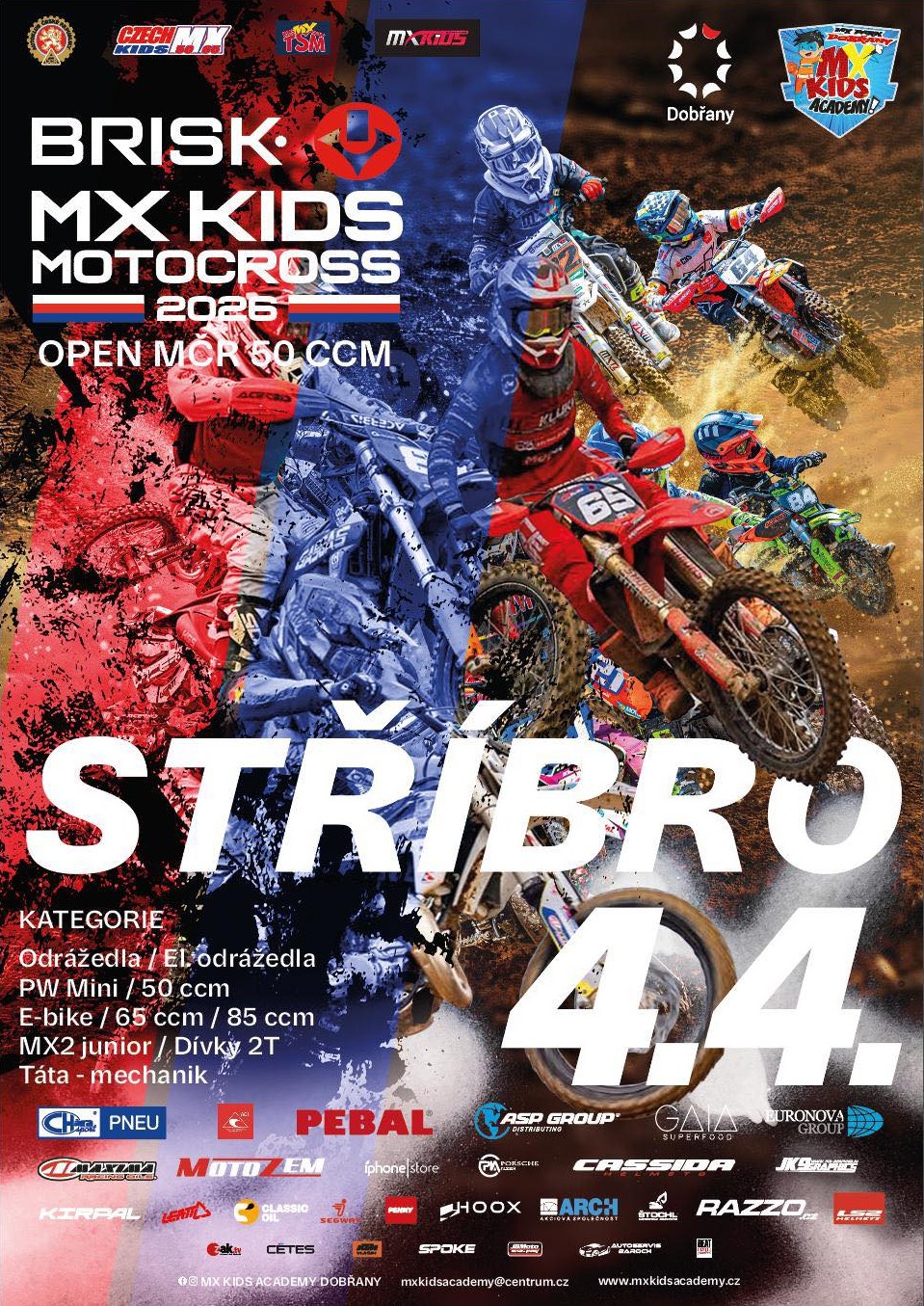 Srdečně zveme k nám do Stříbra na motokros! Na Terénu sv. Petra začínáme už 4. dubna 2026 dětskými a juniorskými závody ze série Brisk MX Kids, které zahrnují také otevřené mistrovství České republiky do 50 ccm. Čeká na vás kompletní divácký servis jako je občerstvení, silné ozvučení a komentář k průběhu závodů nebo elektronická časomíra.