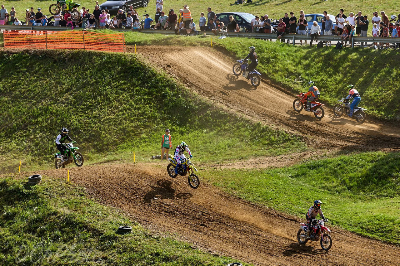 Tvrdé souboje byly k vidění zejména po startu, kdy každý z jezdců toužil dosáhnout na holeshot. Dobře naučený domácí start ukázalo hned několik závodníků ze Stříbrska. Sběr holeshotů místními piloty načal hned v Hobby MX1 Jan Jarolím (424), ve druhé rozjížďce si pro něj suverénně dojel například mladičký nadějný jezdec #12 David Hroch . A dokonce oba své startovní manévry dokázal ovládnout ve Veteránech 50+domácí David Paleček (934). Že jsou věkově senioři, ale na motorce jako mladíci, předvedli borci z třídy Veterán 60+ Pavel Nový z Kladrub se svým šťastným číslem 161 a Leopold Šimák z Tachova #331. Kalhoty jim natrhl pouze jezdec AMK Horšovský Týn Jaroslav Smetana, který slízl smetanu a na bedně se postavil na stupínek nejvyšší. Srdce pak při vyhlášení zaplesalo také šťastným rodičům Davida Hrocha, který skončil v celkovém pořadí druhý. Stříbrnou pozici vyválčil v nabité konkurenci také Paleček. Nad velmi pěkným čtvrtým místem nemusí smutnit Jarolím, byť stupně vítězů byly blízko.